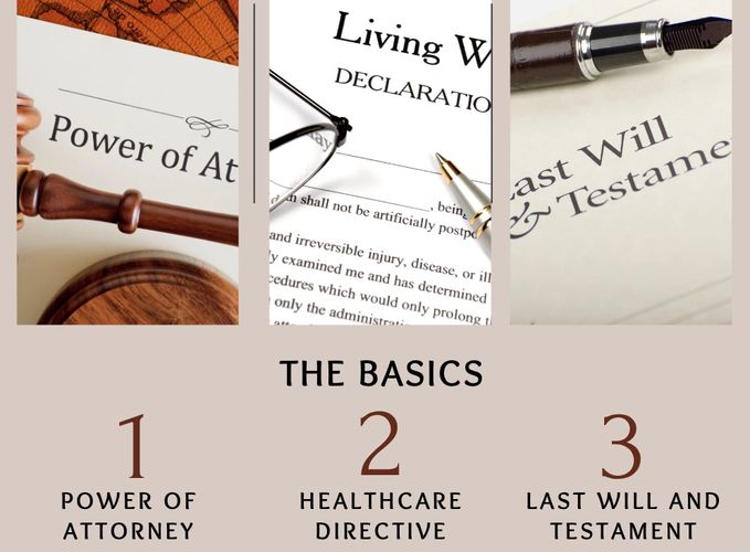 A power of attorney, healthcare directive, and a will are the basic documents you need to begin a plan. Together, these provide legal and personal protection for you during your lifetime and direct how your assets should be distributed after your death.